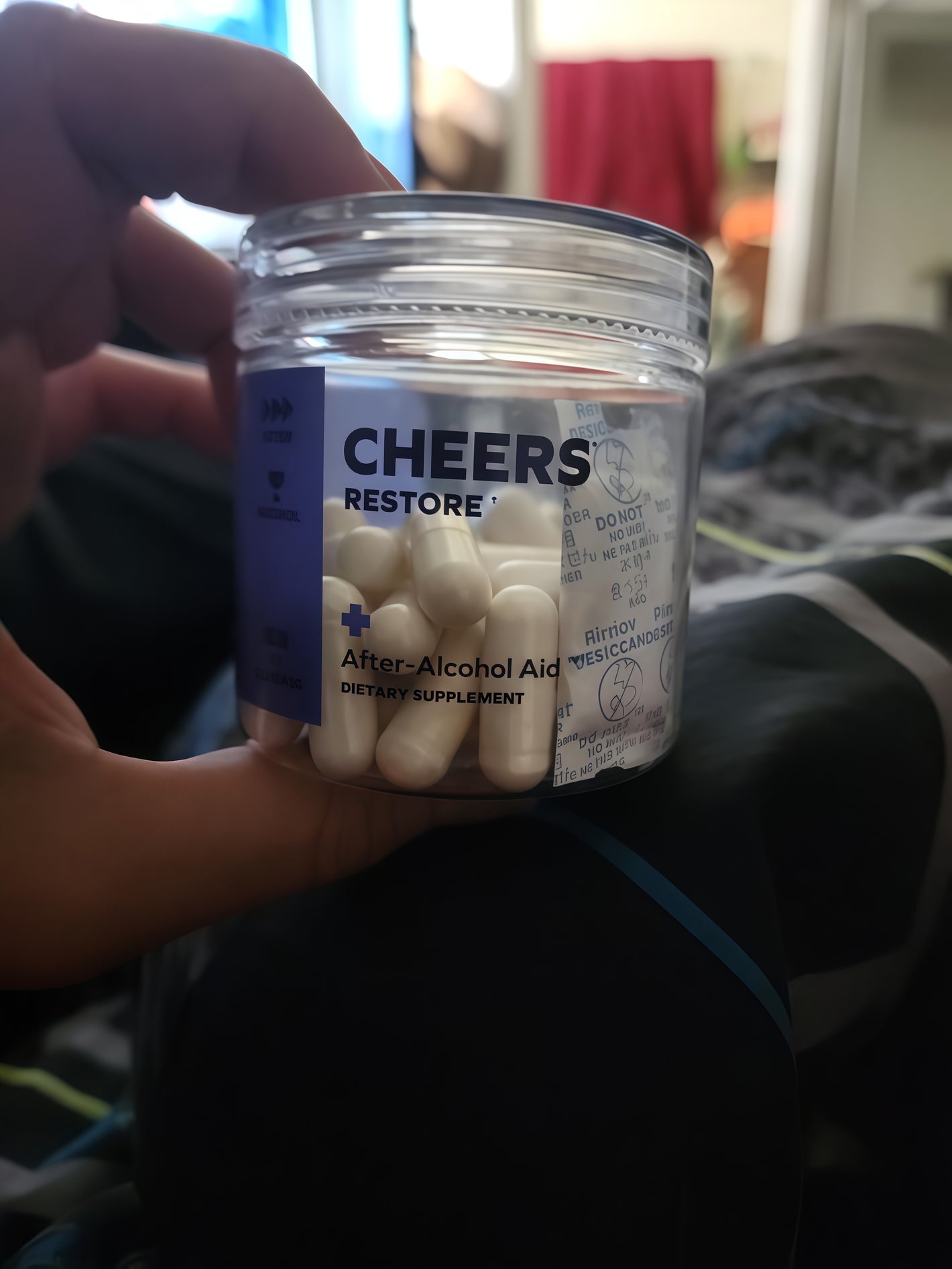 Cheers Restore is a dietary supplement speciallydesigned for post-drinking recovery andhangover relief.